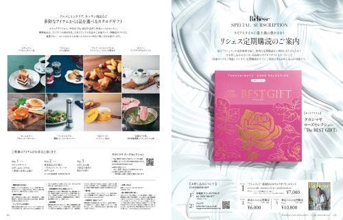 毎号スペシャルなアイテムがセットになって届く『リシェス』の定期購読。今回のセットアイテムは、「高島屋のカタログギフト」のローズセレクション「The BEST GIFT」です。グルメにインテリア、キッチン用品など多彩なアイテムから1品を選べ、掲載商品は、えりすぐりの約570点。人気ブランドの名品やご当地グルメ、体験型ギフトなど、豊富なモノ・コトのなかからお気に入りの1つに出合う楽しさをお届けします。「高島屋のカタログギフト」のローズセレクション「The BEST GIFT」をぜひ雑誌の年間定期購読(1年・4冊)と共にお楽しみください。