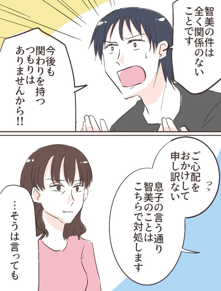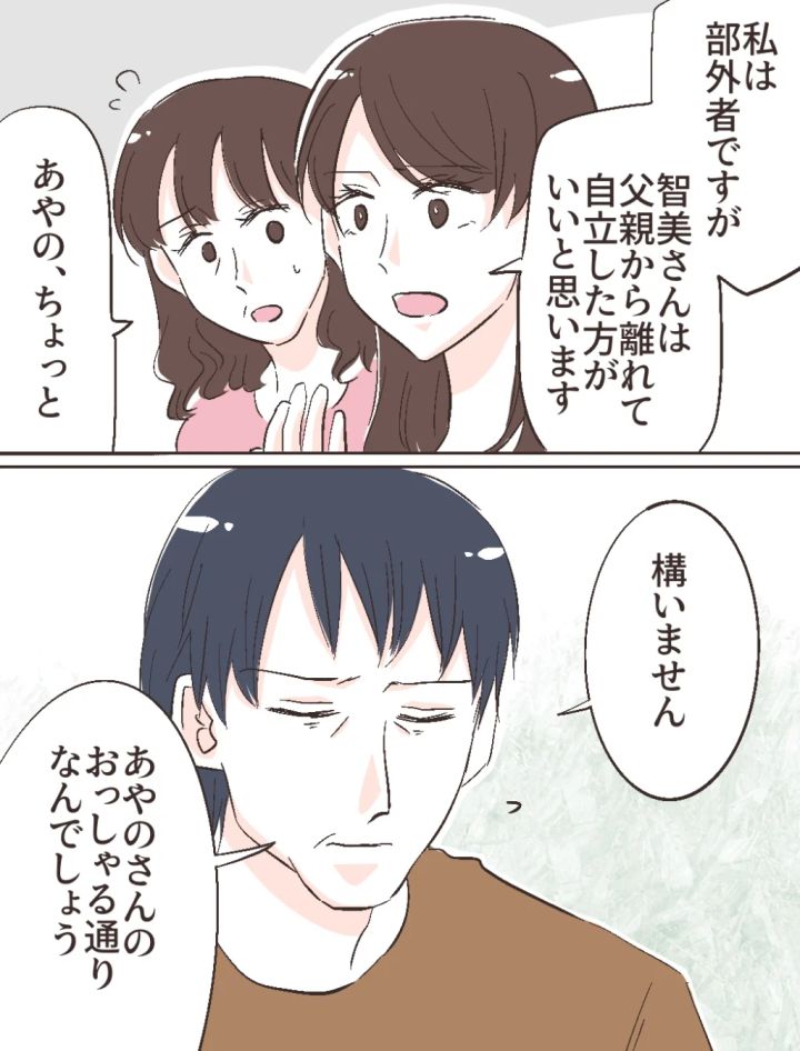 かつて父親の事業の失敗が発端となり壊れてしまった智美さんの家族。確かに気の毒ではあるけれど、修吾を譲れと言われて従うわけにはいきません。これから結婚する修吾の実家に執着し続けられるのも納得がいかないし、智美さんのためにも早くお父さんから離れて、自立すべきだと思いました。