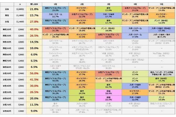 2. 推し活が幸福度を高めることが明らかに。推しの対象は男性はスポーツ系、女性は?