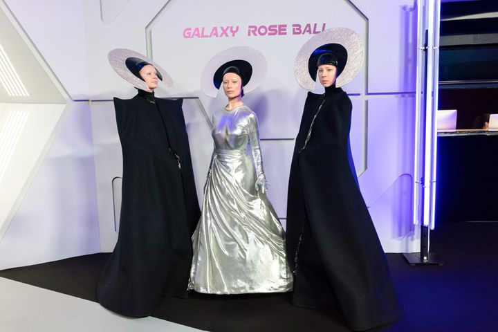 伝統的なレッドカーペットの代わりに、ゲストたちは宇宙船を模した通路を歩いて会場へ足を踏み入れた。まず手渡されたのは今宵のプログラムとギフトバッグ。バッグの中には、クリスチャン・ルブタンの香水「ラ・ローズ」が収められ、プログラムにはこの夜のハイライトの1つである抽選会の番号が記されていた。チャリティを目的とした抽選会の賞品は、クリスチャン・ディオールの「ブックトート」から、モナコの高級ホテル「オテル・ド・パリ・モンテカルロ」の宿泊券まで多岐にわたり、特賞にはシャネルのダイヤモンドネックレスが用意されたという。