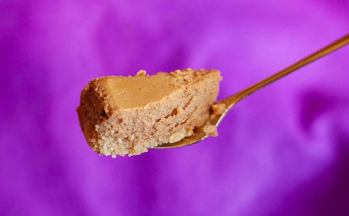また、食感にも特徴あり。チーズ生地はねっとり、しっとり、なめらかで、ビスケット生地はサクサク。ビスケット生地がよいアクセントになっています。かなり簡易的なつくりだけれど、シンプルだからこそそれぞれのおいしさをしっかり味わえるのがうれしいですね。