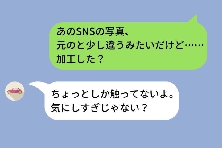 「あのSNSの写真、元のと少し違うみたいだけど……加工した?」