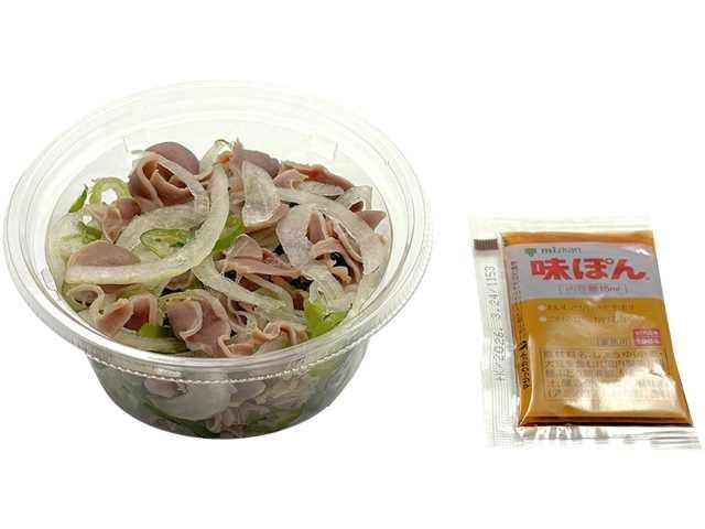 玉ねぎスライス・大根千切り・青ねぎ・砂肝を使用したさっぱりおつまみです。別添でポン酢付きです。 ※宮崎県、鹿児島県では取り扱いがございません。