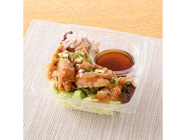 油淋鶏をトッピングしたサラダです。醤油や三温糖、りんご酢などをベースとした甘酢ダレ付きです。 ※静岡県(東部)では取り扱いがございません。 東海・北陸で販売