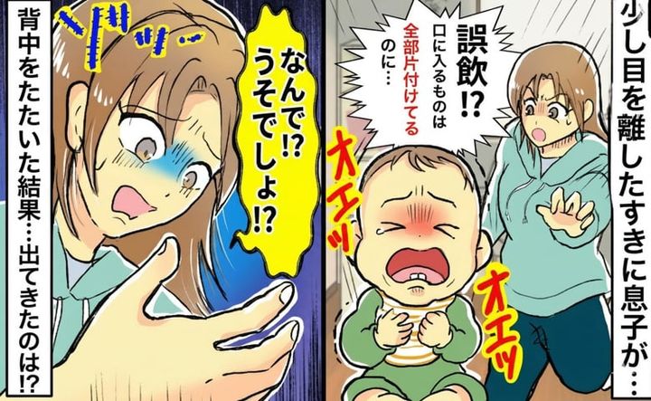 「え?何か飲み込んだの!?」突然オエッと言って泣き出した息子。あわてて背中を叩くと…出てきた驚きの物とは