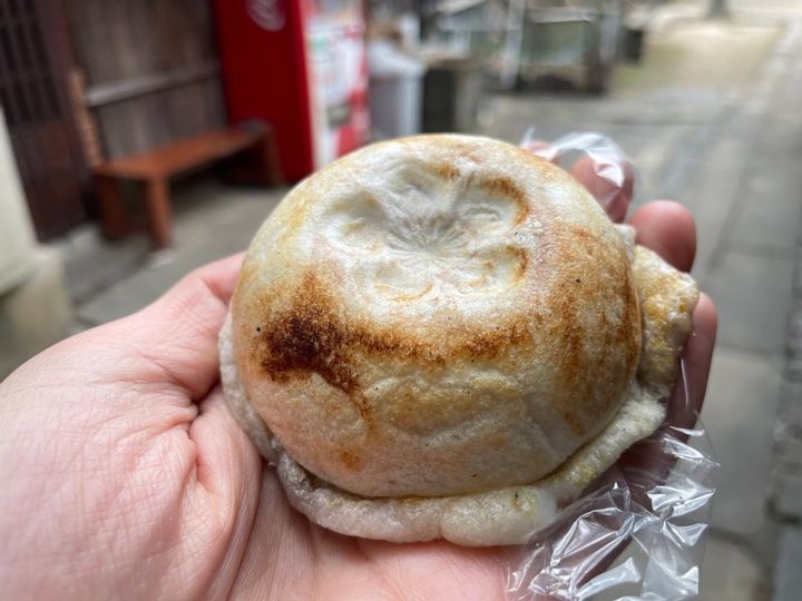 明治初期から約150年続くこのお店の名物「梅ヶ枝焼餅」は4個で800円。できたてほやほやの味を楽しめる。