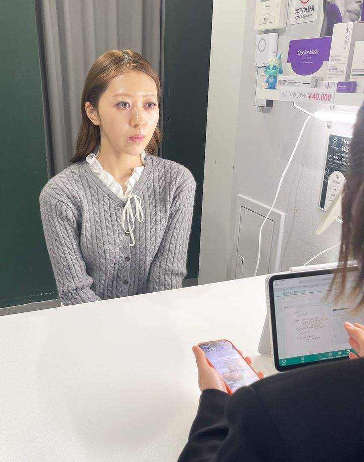「この日は、これまでの忙しさもたたって、赤みやニキビ跡も気になる状態でした……。施術台に横になると、明るいライトの下で、担当の方が肌状態を改めてチェック。そのうえで、今回の施術で使用する美容液やパックを提案してくれます。この瞬間は、仕上がりへの期待で、胸が膨らみます!」