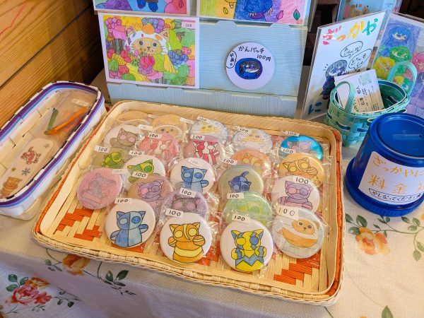 缶バッチやコップなど、様々な作品がありました。 「森のアトリエ」では、不定期で展示会なども行っているそうですよ♪