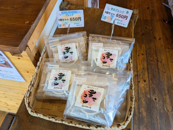 店内では、珈琲を購入することもできます。 3つのブレンド「すっきりブレンド・幸せブレンド・嬉しブレンド」がありました。