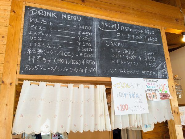 その他、ケーキや淹れたてのコーヒー・ドリンクもありました。 値段はどれもリーズナブルで嬉しい♪ この日は日替わりランチを予約していました(日替わりランは要予約です)。