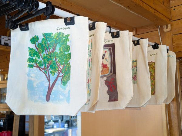 作業所の方が描いた絵をプリントしたオリジナルバッグ。