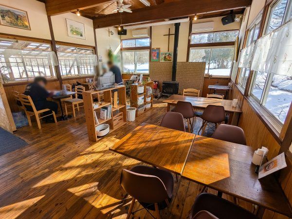 ログハウス風の店内は、あたたかい木のぬくもりが感じられます。 この日は家族と伺いましたが、おひとりさまでもゆっくりと過ごせる印象です。