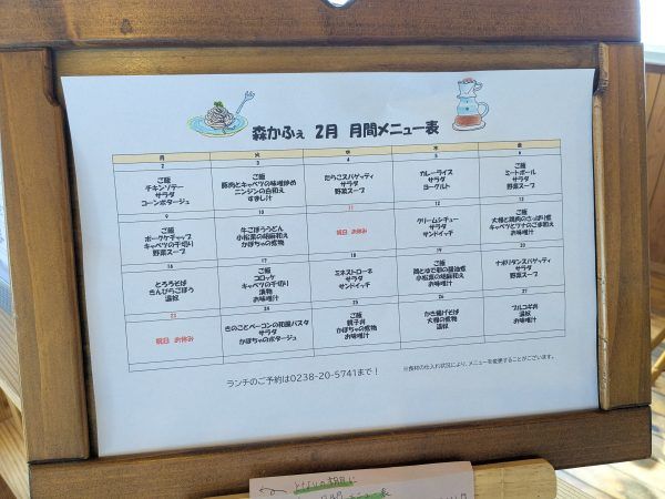 森かふぇでは、手作りの日替わりランチを味わうことができます。