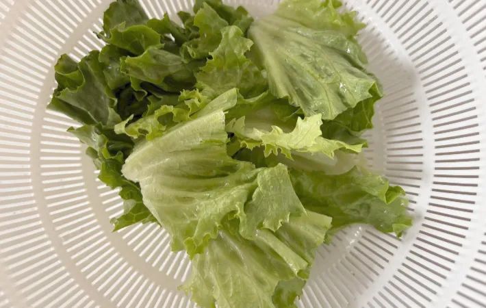 リーフレタスはしっかりと洗ってから水気を切り、食べやすい大きさにちぎっておきます。