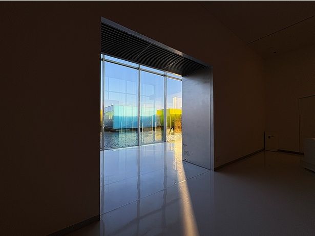 これが美術館の展示室?水盤の上のカラフルな8つのキューブの中へ