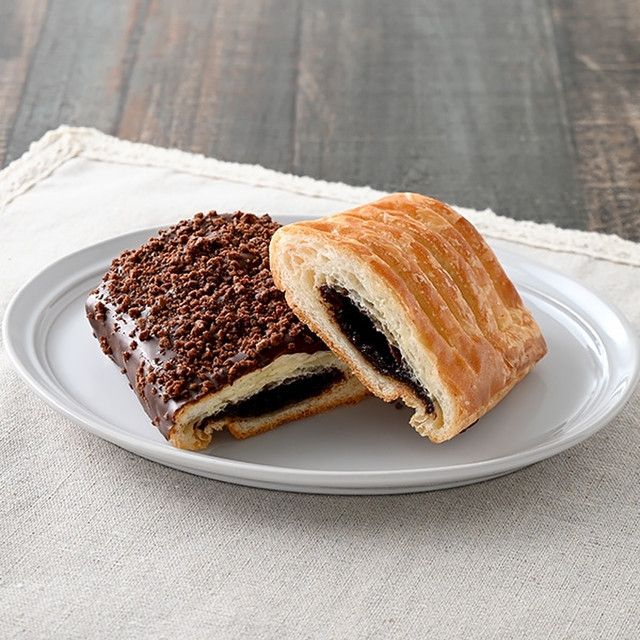 チョコクリームを包み込んだデニッシュにチョココーチングとチョコクランチがトッピングされています。