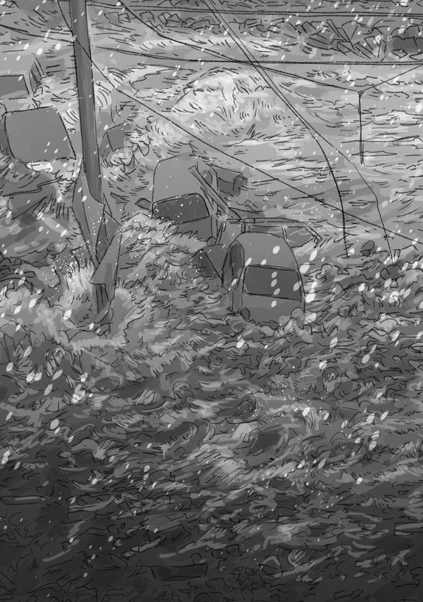 3. 地震ののち、迫り来る津波。家屋、自動車――すべてを巻き込み、海辺の町は波にのまれていく/るすばん猫きなこ④