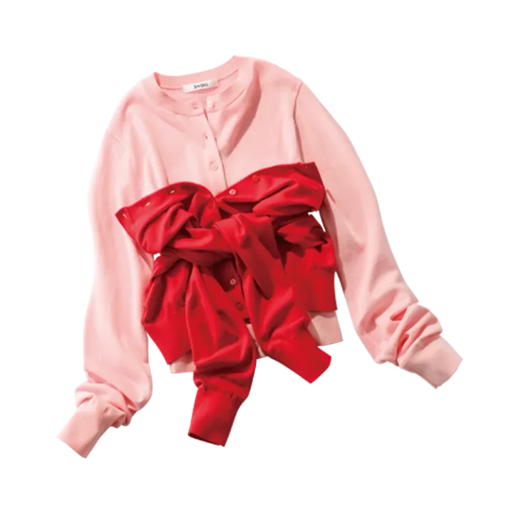 「この春はカーデ×カーデのように同じアイテムでのレイヤードが新鮮!2枚のカーデのセットなので、ビスチエのように巻くアレンジ方法もオススメしています」