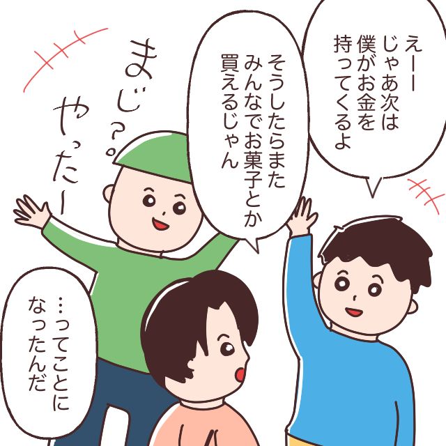レンはそんなカイト君に、「じゃあ次は僕がお金を持ってくるよ、そうしたらまたみんなでお菓子とか買えるじゃん」と提案したそうです。それを聞いたカイト君とシュン君は大喜び。嬉しそうにはしゃぐ2人の姿を見て、レンは「自分のおこづかいで友達を楽しませてあげたい」と思ったようです。