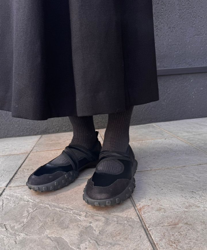 近年、スニーカーもいろいろなデザインが登場していますが、こちらはサテン生地とクロスストラップでスポーティになり過ぎない絶妙な雰囲気を醸し出していて、まさに今の気分! そしてちょっと主張のあるソールのボリューム感も、今までのスニーカーのリズムと違って新鮮な気分ではけそうです。