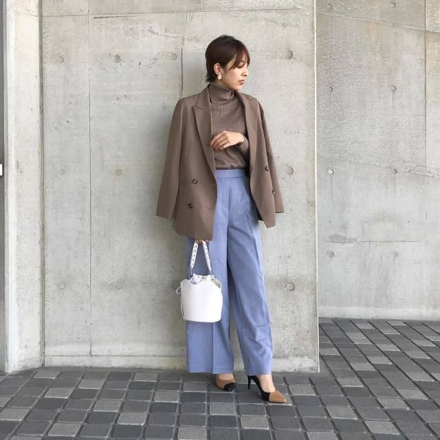 定番でもある茶色ジャケットは、鮮やかな色がおしゃれなカラーパンツとも相性バツグン。例えばスナップでは、淡いくすみブルーのパンツを合わせて爽やかな装いに。茶色とブルーの組み合わせは今おしゃれさんの間でも人気ですよね!