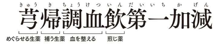 「芎帰調血飲」という漢方のパワーアップ版。「血」のめぐりが悪く、冷えやすい体質の方に適しています。全身に栄養を行き渡らせ、体を温めることで血行を促す効果を発揮。