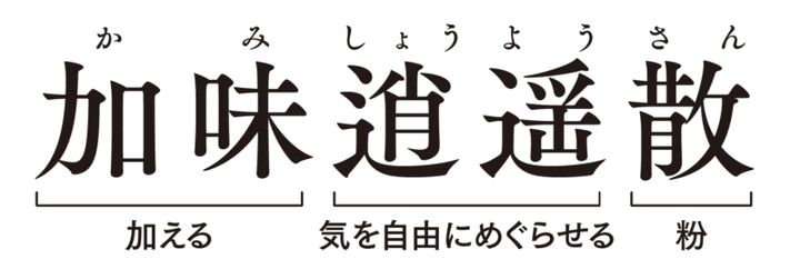 生 薬 柴胡(サイコ)、芍薬(シャクヤク)、蒼朮(ソウジュツ)、当帰(トウキ)、茯苓(ブクリョウ)、山梔子(サンシシ)、牡丹皮(ボタンピ)、甘草(カンゾウ)、生姜(ショウキョウ)、薄荷(ハッカ)