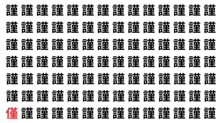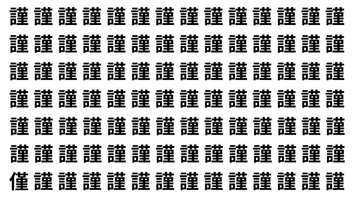 たくさんの「謹」の中に、よく似た別の漢字が1文字だけ隠れています。