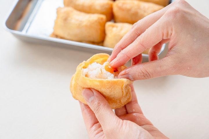 4. 3をいなり揚げに等分して詰める。