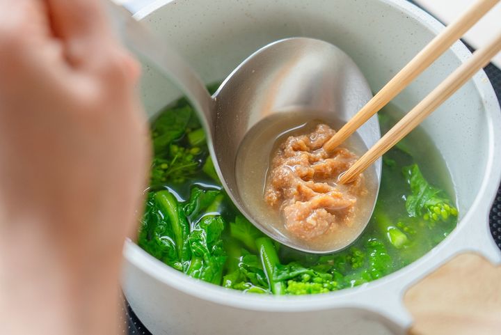4. 火を弱め、みそを溶き入れる。