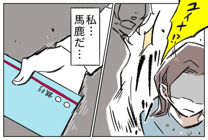 部屋に入り通帳を手に取ると、「ユイナ!?」と私の名前を呼ぶリョウを無視して、「私・・馬鹿だ・・」と自分自身に呆れながら部屋を飛び出しました。