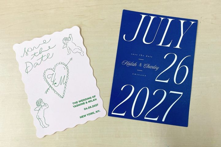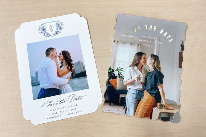 さまざまなコンセプト別に紹介した「Save the Date」カードは、米国で人気の Minted Weddings で制作されたものです。同社は、世界中のデザイナー作品をもとに、洗練されたウエディング・ステーショナリーを届けるサービスを提供中。「Save the Date」では写真入りからミニマルまでデザインが豊富で、用紙や印刷の質感にもこだわりつつ、細かなカスタマイズが可能です。封筒、ゲスト住所印字、校正サポートなど“実務面”が整っているのも魅力。さらに国際配送にも対応し、海外(日本を含む)から検討する際も選択肢に入れやすい一社です。