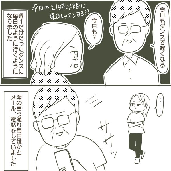 父が不倫をしているようだと知ってから、父の行動はますます怪しく感じました。帰宅も毎日23時過ぎでした。