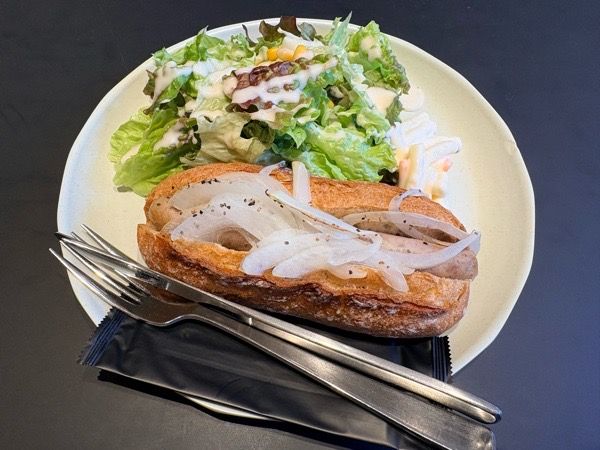 ソーセージのちょうどいい塩気と、カフェラテのふわふわでクリーミーな甘さが交互にやってきて、食べ始めたらもう止まりません。