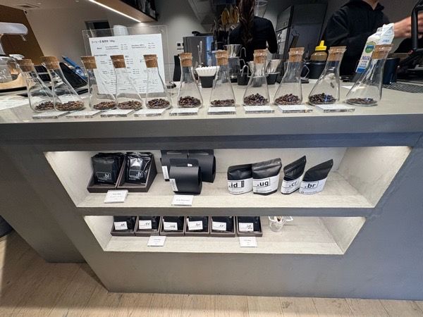 扉を開けて店内に入ると、まず目に飛び込んでくるのが、カウンター横にきれいに並べられたコーヒー豆たち。