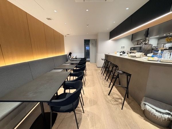 店内は、シュッとしたブラックの机と椅子が並ぶ都会的なデザイン。
