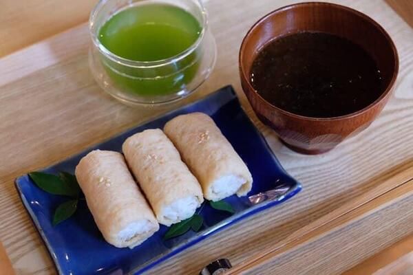 ほんのり温かく、ひと口かじると、じゅわっと広がるやさしい甘みと旨み。中のご飯はもちもちとして艶があり、油揚げと出汁のコクをしっかり受け止めています。