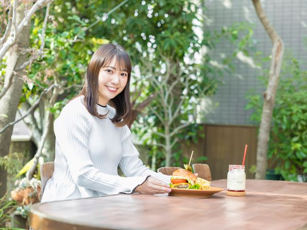 そんな大井町を散歩中に見つけたのが「GROVE cafe&green」。住宅街にある隠れ家的な雰囲気で「ステキなお店を発見した」とうれしかったそう。「お気に入りのGROVEバーガーをテラス席で食べているときは本当に幸せ。ランチやディナーだけでなく、バーベキューもできるので、大井町から離れた今でもGROVEにはおじゃましています」