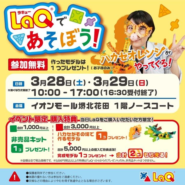 LaQであそぼう!LaQハカセオレンジがやってくる! (イオンモール堺北花田 / 3月28日・29日)