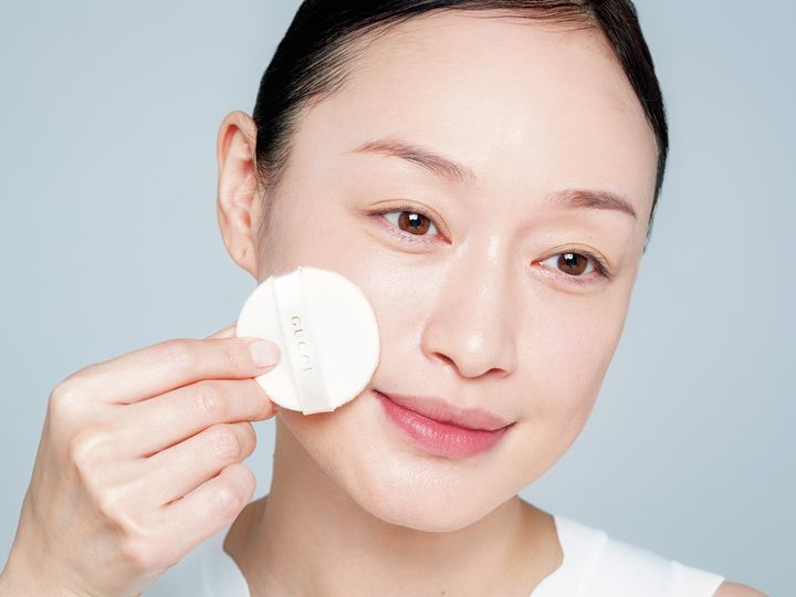 【モデル使用】バターのようにとろけるテクスチャーが、肌の上をなめらかに滑り、瞬時にマットな仕上がりとぼかし効果を発揮。グッチ マット パウダー 00 10g¥9,570(グッチ ビューティ)