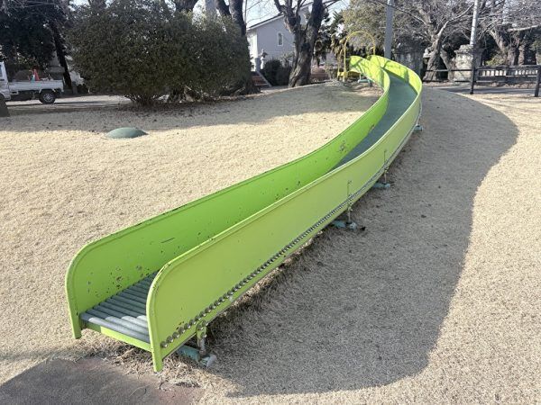 愛宕山公園にはローラーの滑り台がありました!大きな公園でないとなかなかお目にかかれない代物ですがまさか住宅街で発見するとは驚きです。