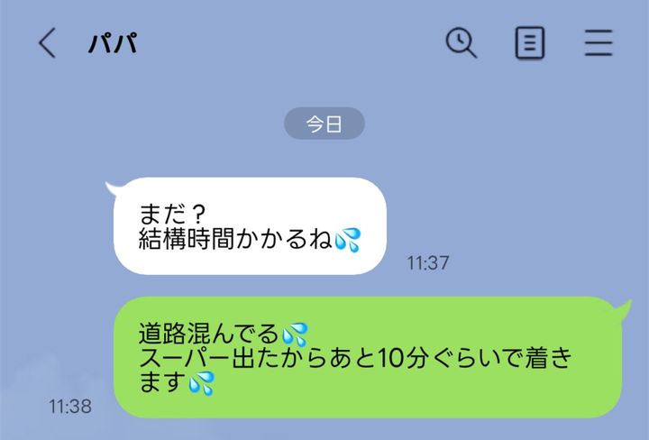 家を出てから30分くらい経って「結構時間かかるね💦」とのLINE。