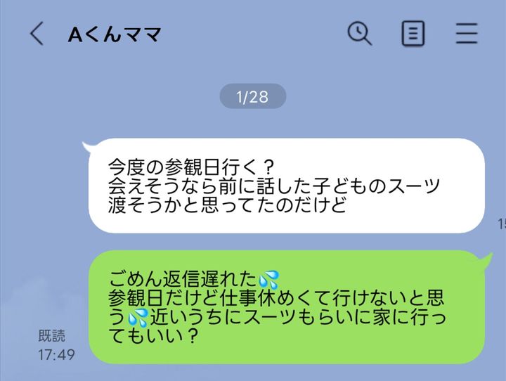 「子ども用のスーツをあげる」と言われていたことから、ママ友からLINEが来たタイミングで、改めて話題に出したという投稿者さん。