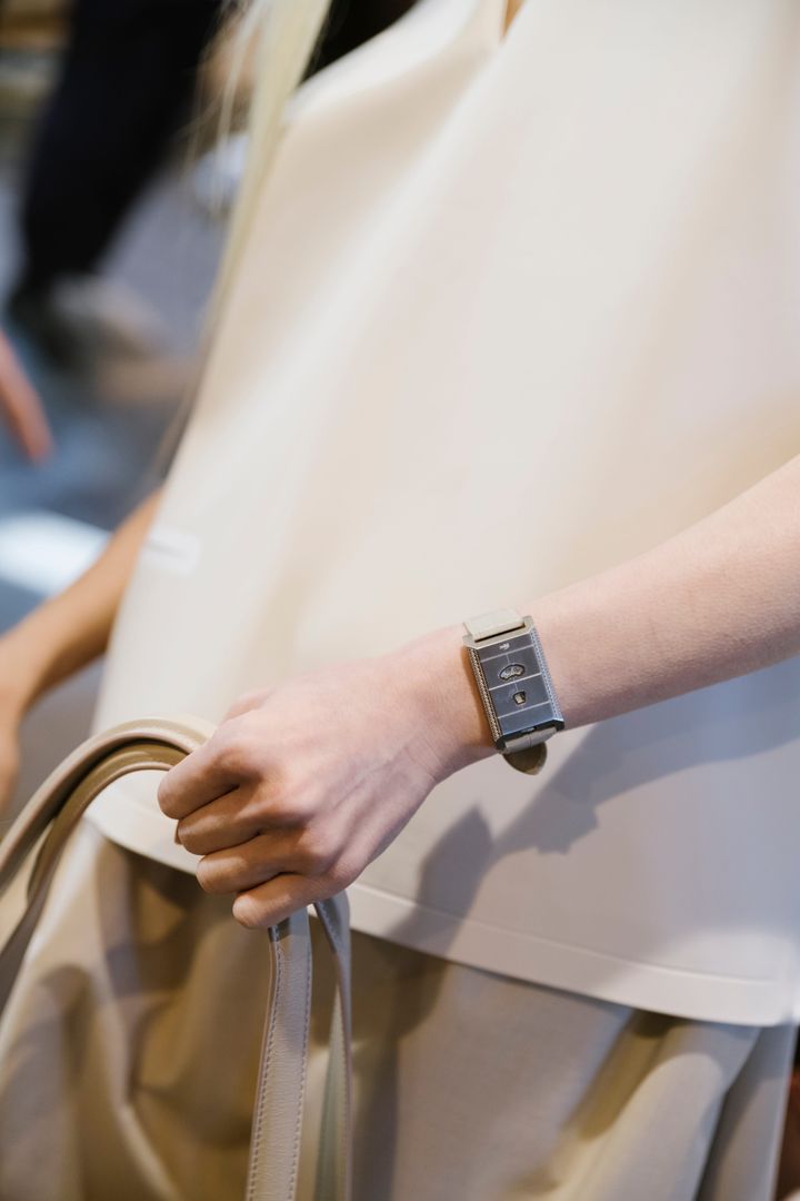 「スリー パラディ」では、複数のウォッチをブローチのようにニットやバッグに飾りつけ、マキシマリズムを極めたルックを披露。「ラコステ」では、これまでになかった、型破りなデザインの文字盤が視線を集めていた。