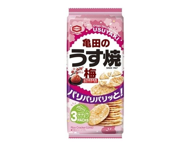 1967年の発売以来、50年以上にわたりお客様に愛されている「亀田のうす焼」ブランドから、新たな定番商品として上品でさっぱりとした味わいをお楽しみいただける『亀田のうす焼 梅』が新登場します。 紀州産南高梅の梅肉パウダーを使用した爽やかな酸味をベースに、隠し味として昆布を加えることで、ほのかにうまみが広がる飽きのこない味わいに仕上げています。「亀田のうす焼」ならではのパリパリパリッとした軽い食感と、さっぱりとした味わいは気分転換にもぴったりです。ほっと一息つきたいリラックスタイムのおともとして、ぜひお楽しみください。