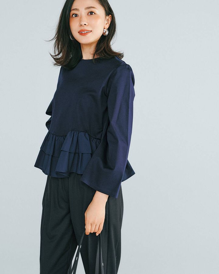 ③きちんと感とカジュアル感を両立「裾フリルトップス」