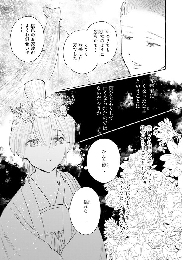 「この娘はいずれ王を害する」と託宣を受けた少女・鈴雪(りんせつ)は、廟で静かに生涯を終えるはずだった。しかし、王・藍叡(らんえい)の手で強引に都へ連れ去られ、名ばかりの王后となる。それから8年、離宮で美しく知性あふれる女性となった鈴雪は、陰謀渦巻く後宮の世界に投げ込まれてしまう。王の密命を受け、王子殺しの真実を探る中で次第に心を通わせていく2人。しかし後宮の闇と禁忌に触れた鈴雪は、何者かに毒を盛られてしまい――。後宮に潜む殺人鬼の狙いは何だったのか。ご好評いただいた『雪花妃伝 ~藍帝後宮始末記~』第1巻を再連載。さらに第2~5巻から新たなエピソードを5月末までの期間限定でお届けします。