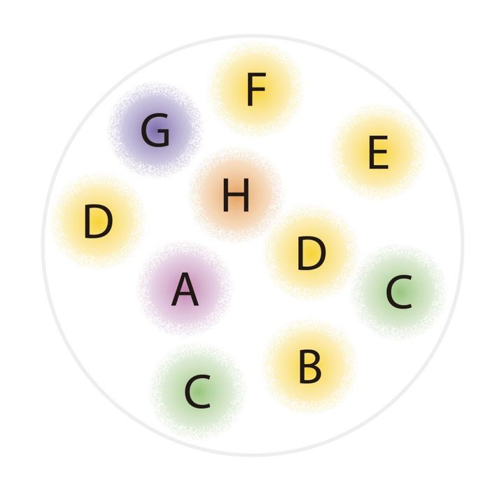 オステオスペルマムの寄せ植え② 補色対比の色づかいと明暗・大小を意識した配置で、遠近感を表現