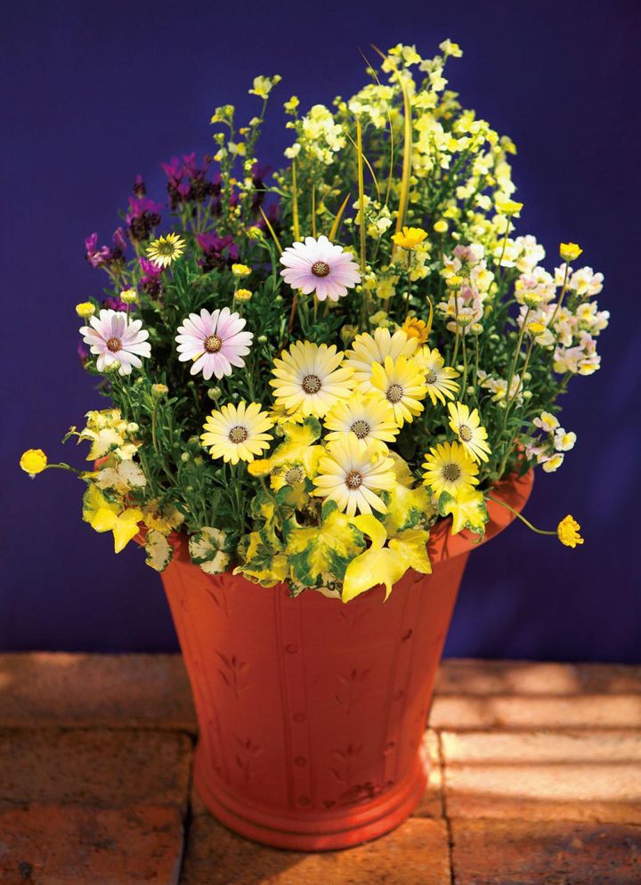カラフルな花の苗が店頭にたくさん出回るこの時期。長く楽しめて生活に彩りを与えてくれる寄せ植えを作ってみませんか? ここでは英国園芸研究家の吉谷桂子さんに、黄色のオステオスペルマムを主役とした寄せ植えを教えていただきました。