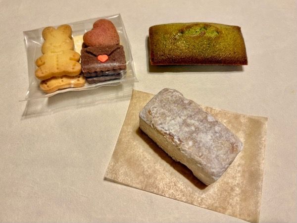 自分用には「焼きたて秋保石菓」、「フィナンシェ(小松菜)」、「クッキー」を購入。